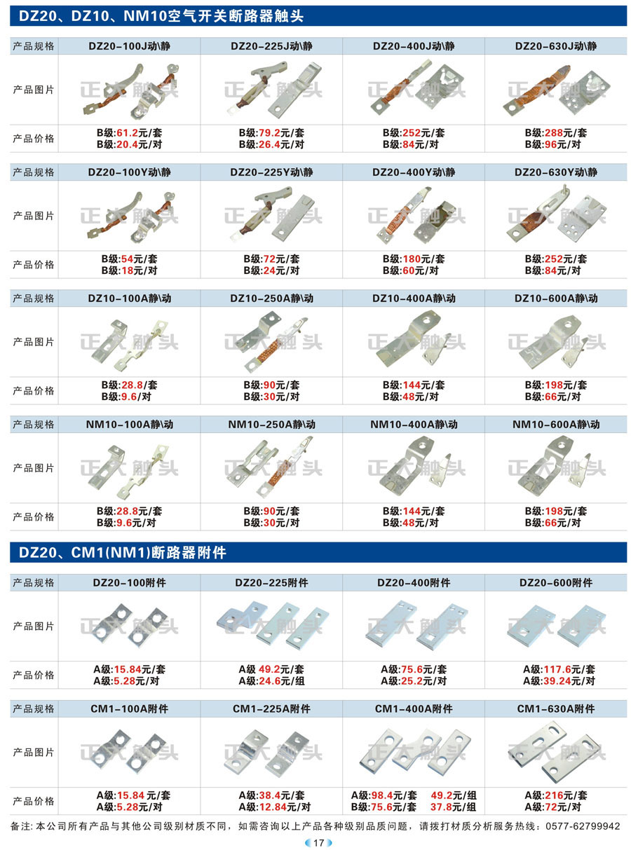 DZ20、DZ10、NM10空气开关断路器触头、DZ20、CM1(NM1)断路器附件