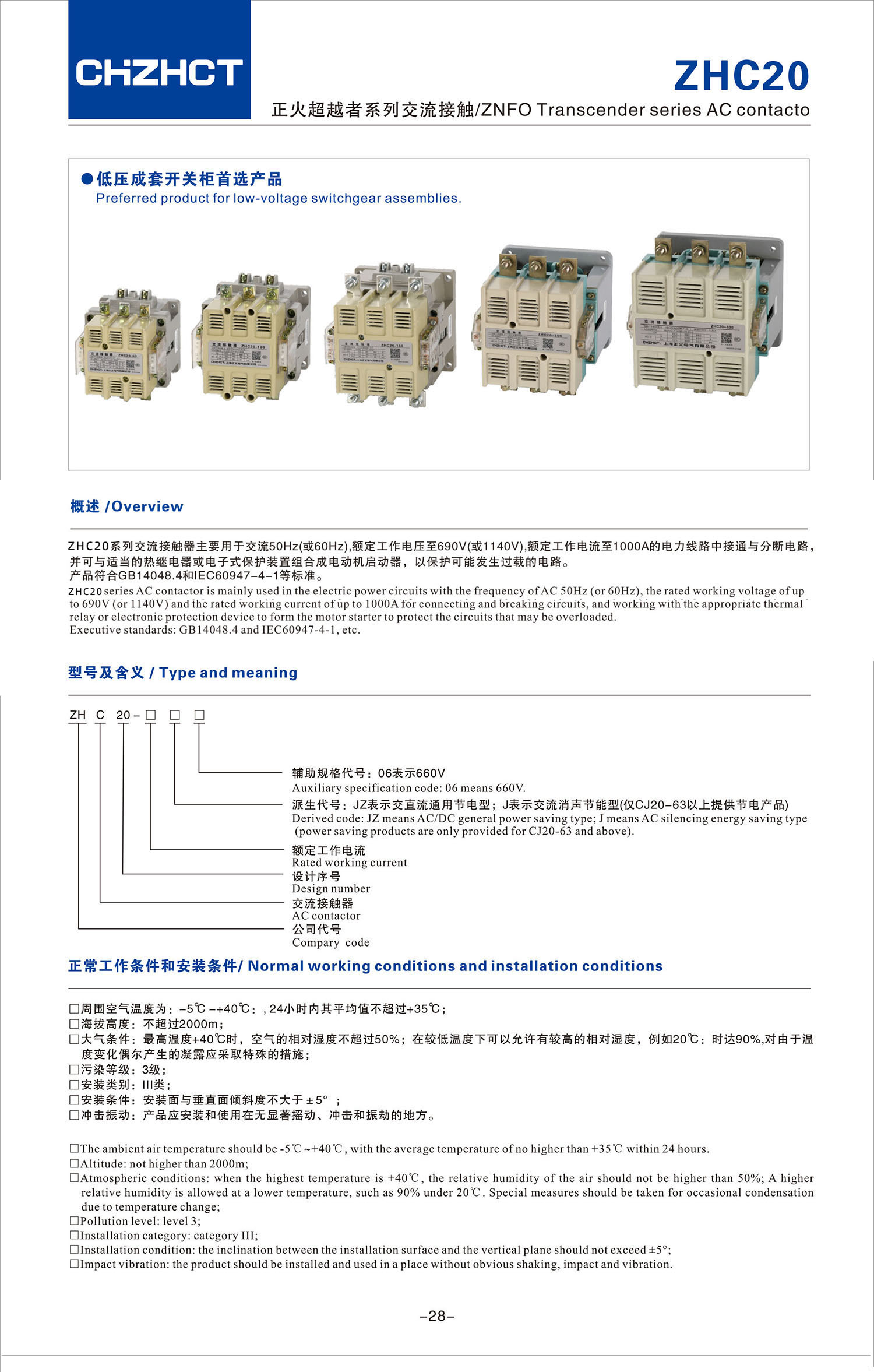 ZHC20 开云体育超越者系列交流接触器产品说明书