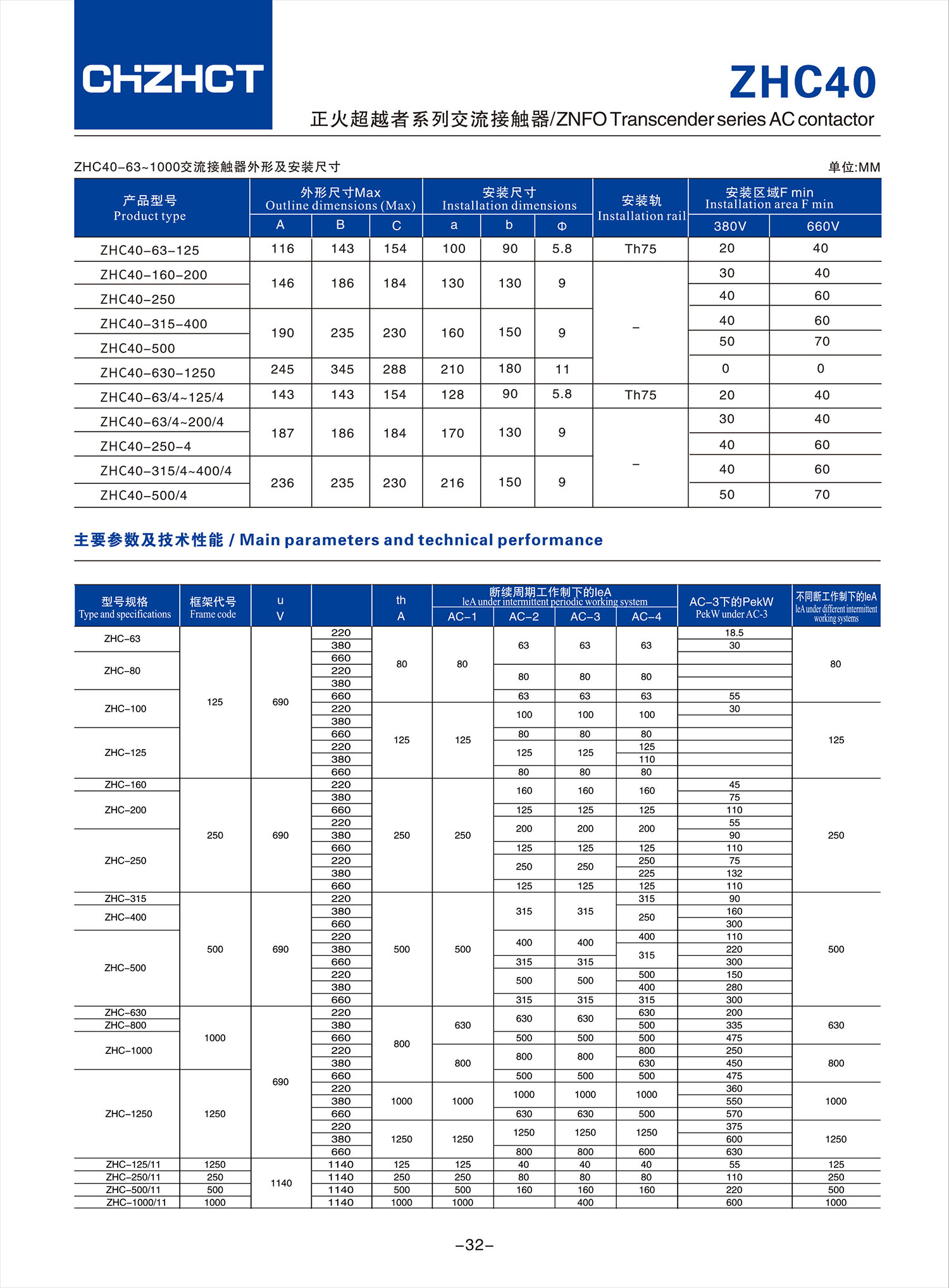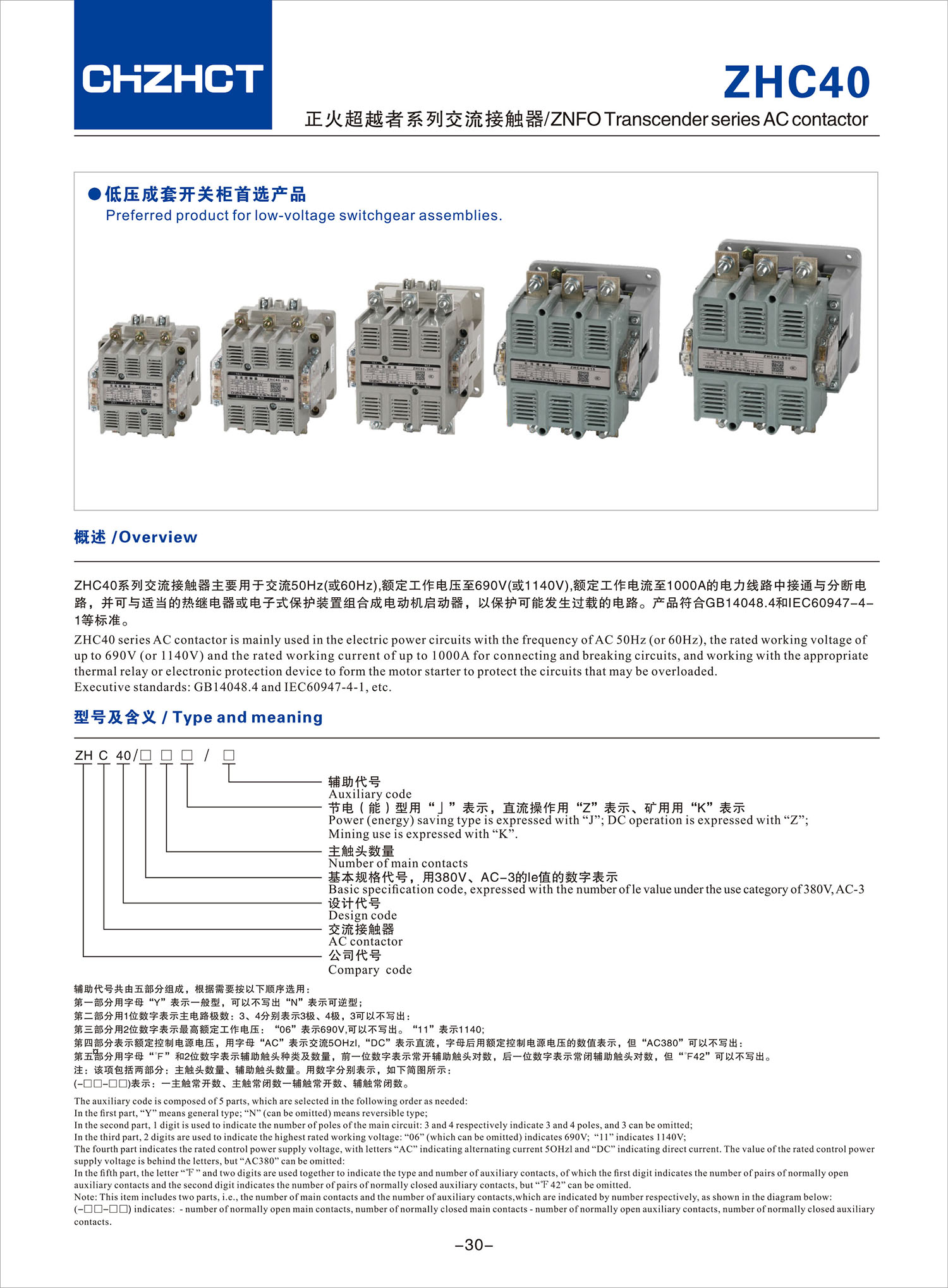ZHC40 开云体育超越者系列交流接触器产品说明书