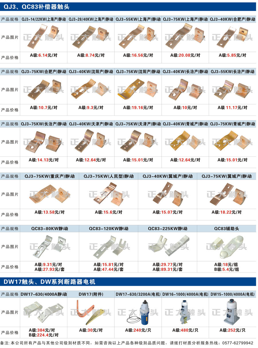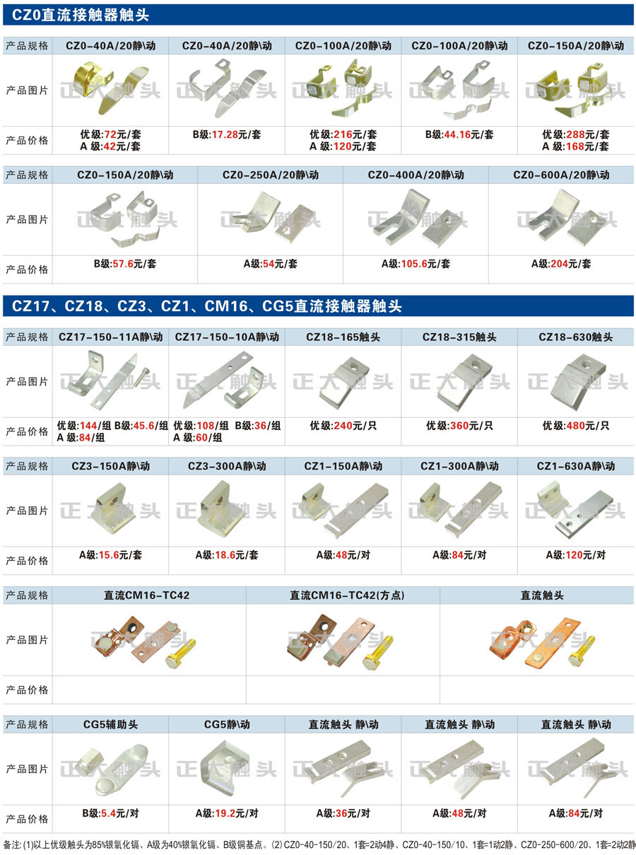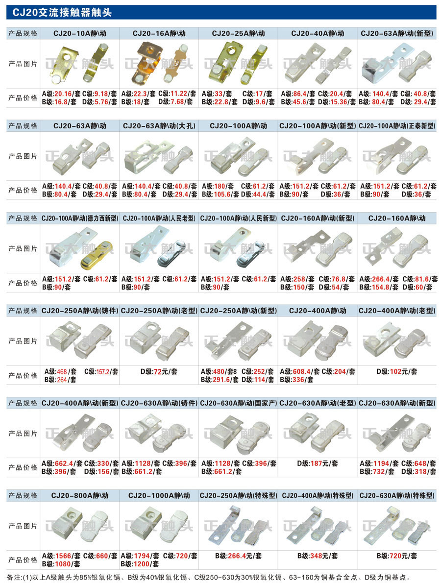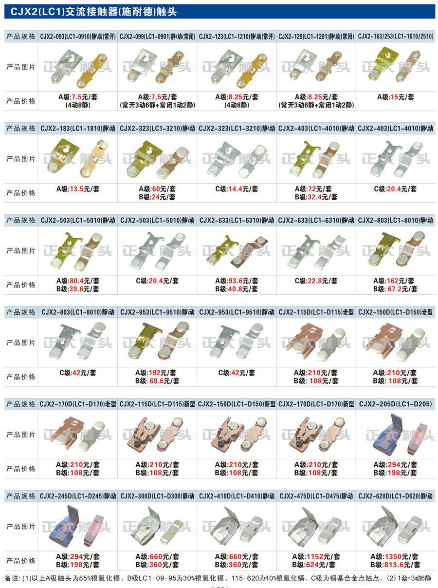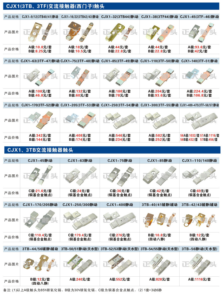 触头元件作为电器开关核心元件,主要用于接触器,继电器,断路器,凸轮控制器,补偿器,行程开关,脚踏开关,辅助开关等。开云体育电气现生产CJT1,CJX1,CJX2,CJX4,CJX5,CJX8(B系列)CJ20,CJ40,CJ12,CJ15,CJ24,CJ24Y,CJ0,CDC10,CJ91,CT91,CJ913,CJ914,CJ3,CJ8Z交流接触器触头,CZ0,CZ1,CZ3,CZ17,CZ18,CG5直流接触器触头,QJ3,QC83补偿器触头,凸轮控制器,主令触头,KT10,KT12,KT14,KTJ1,KTJ5,KTJ6,KTJ15(QT5),LK1,LK17,LK18,THQ1,TQKT等;断路器触头DW10,DW16,DW15,DW17,DW45,DZ10,DZ20,内燃机触头,矿用触头,叉车,吊车触头,JYN1,JYN2,ZN28,SN10,VS1,梅花触头等。进口ABB系列AF,EH,EK,富士SC系列,日立H系列,施耐德LC1系列,西门子3TF,3TB系列,LG公司(LS产电)GMC系列,三菱机电SN系列。与国内正泰,德力西,天正,人民等,国外ABB,施耐德,西门子,富士,三菱等厂家电气配套。
