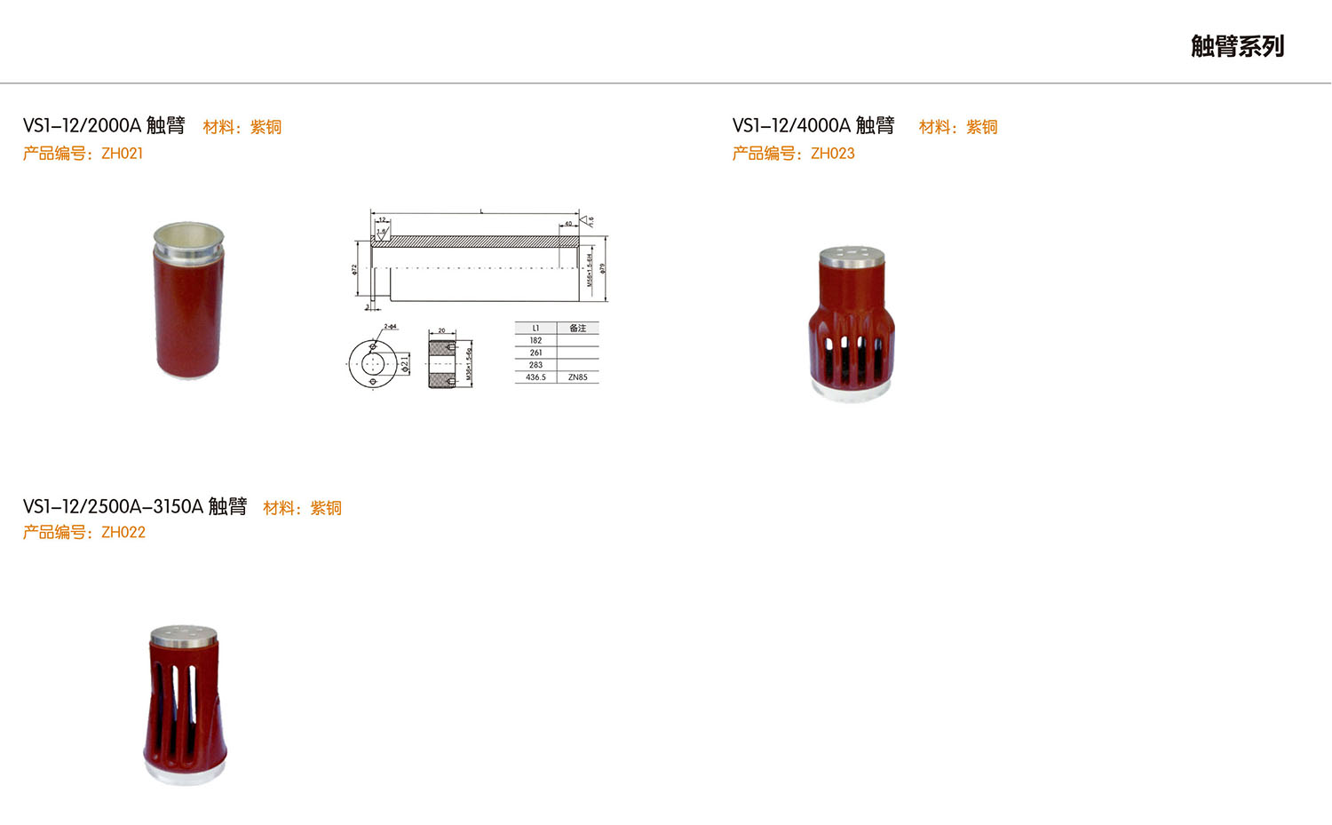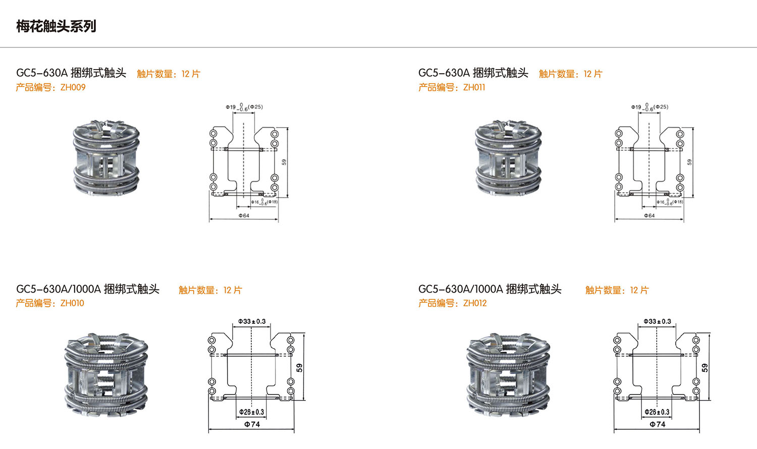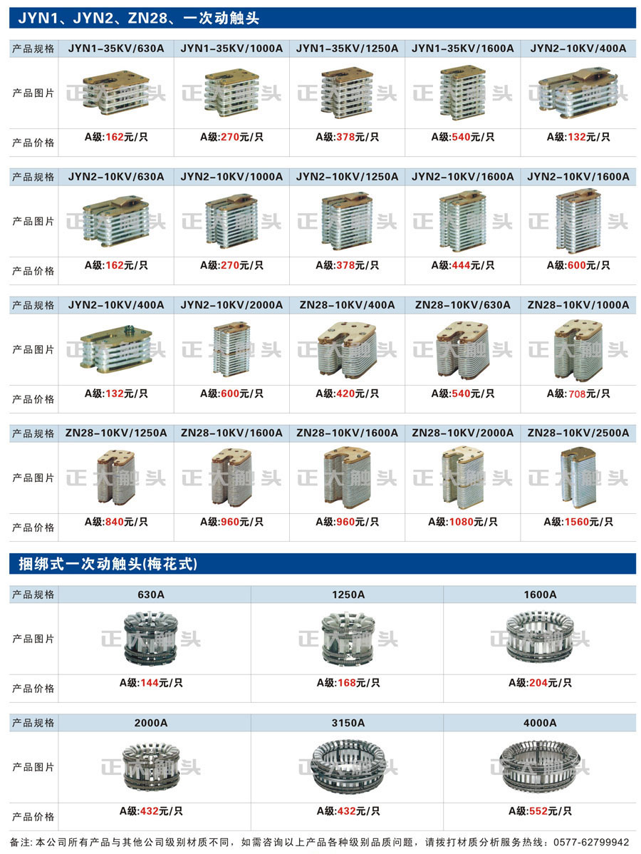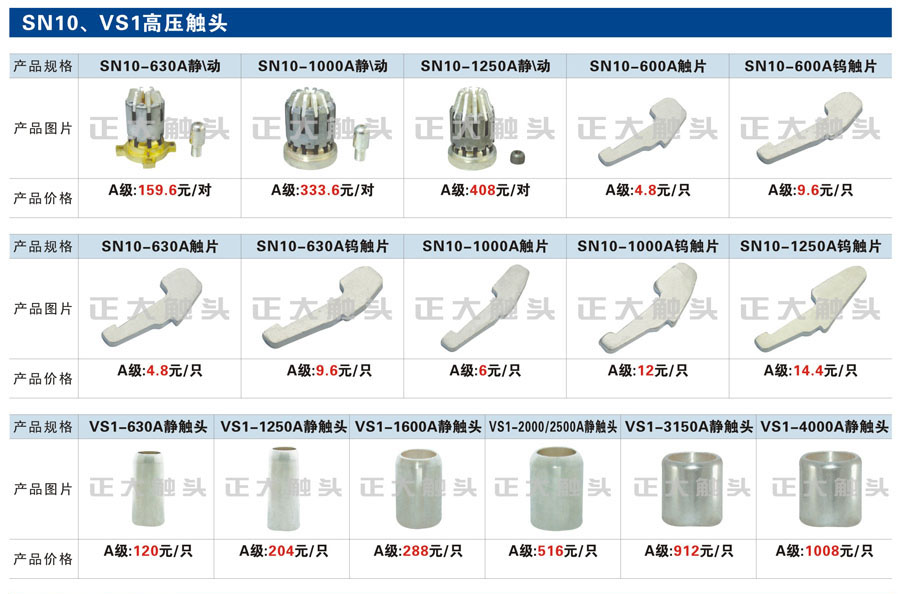 二、高压触头产品规格及图片