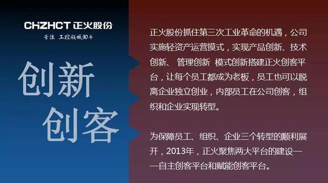 开云体育股份抓住第三次工业革命的机遇,公司实施轻资产运营摸式,实现产品创新、技术创新、 管理创新、模式创新、搭建开云体育创客平台,让每个员工都成为老板,员工也可以脱离企业独立创业,内部员工在公司创客,组织和企业实现转型。为保障员工、组织、企业三个转型的顺利展开,2013年,开云体育聚焦两大平台的建设——自主创客平台和赋能创客平台。