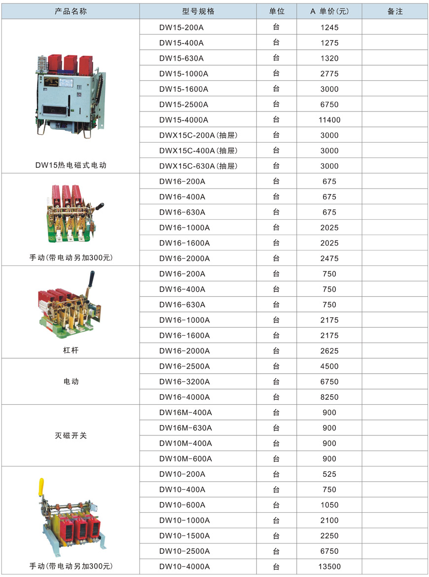 DW15、DWX15、DW16、DW10万能式空气断路器