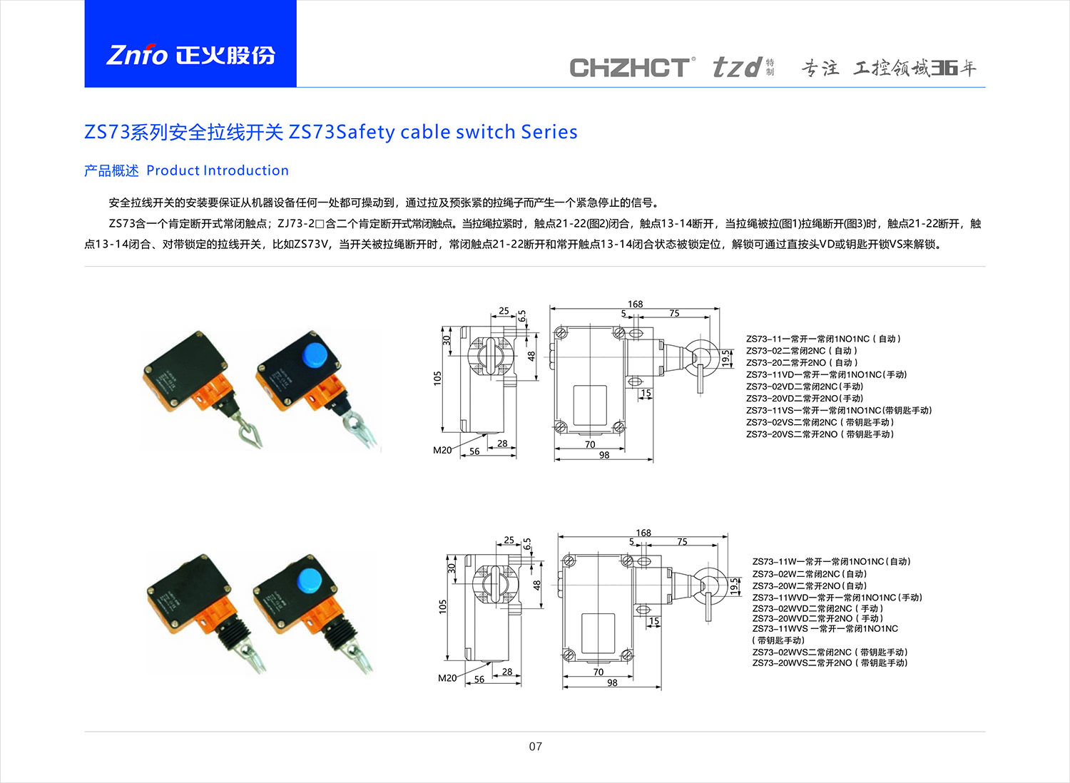 ZS73安全拉线开关_拉绳开关_行程/微动/跑偏/拉绳/超速_工业控制与保护_产品中心_开云体育电气股份有限公司