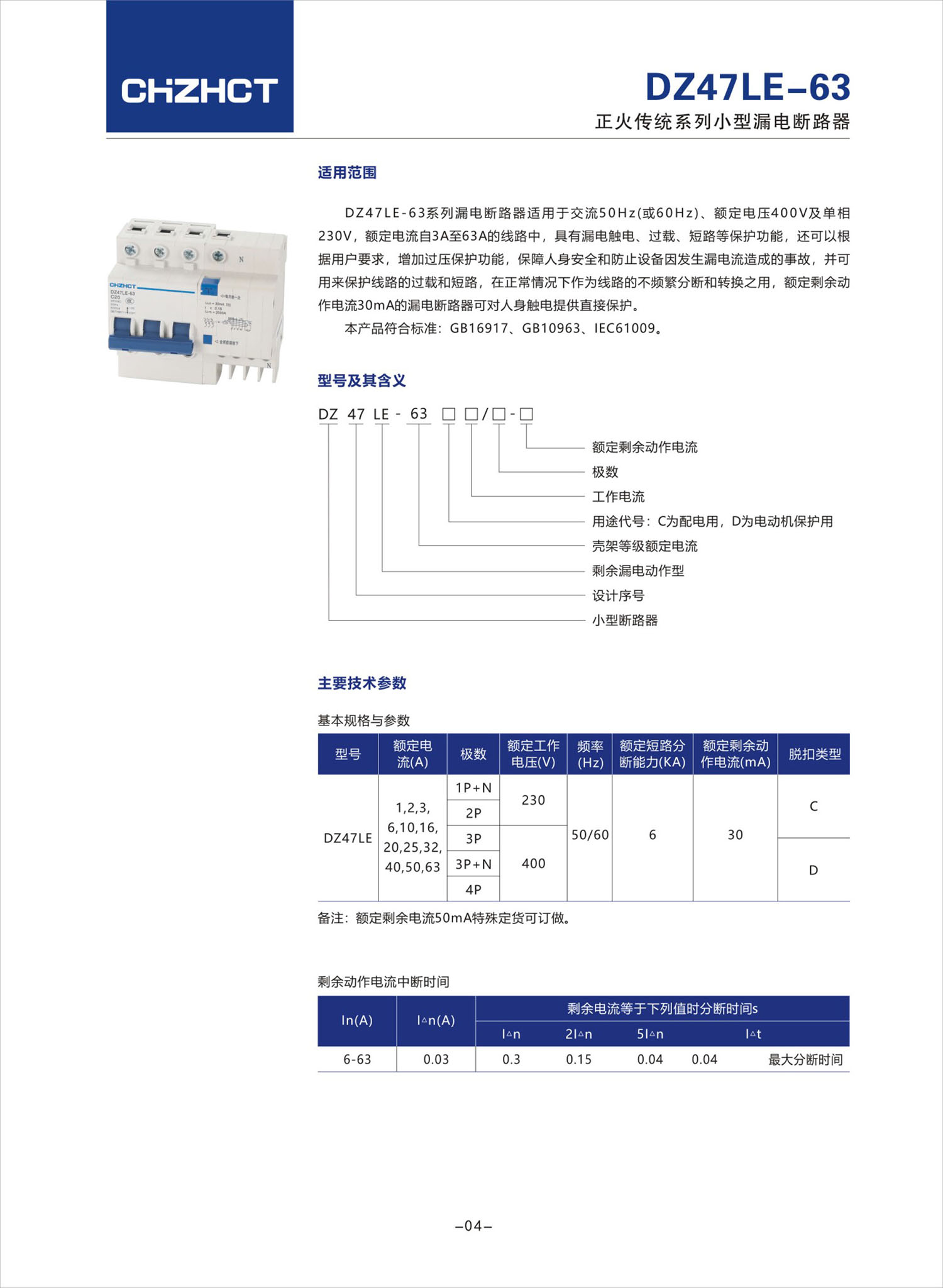DZ47LE-63 小型漏电断路器_漏电小型断路器_终端电器_产品中心_开云体育电气股份有限公司