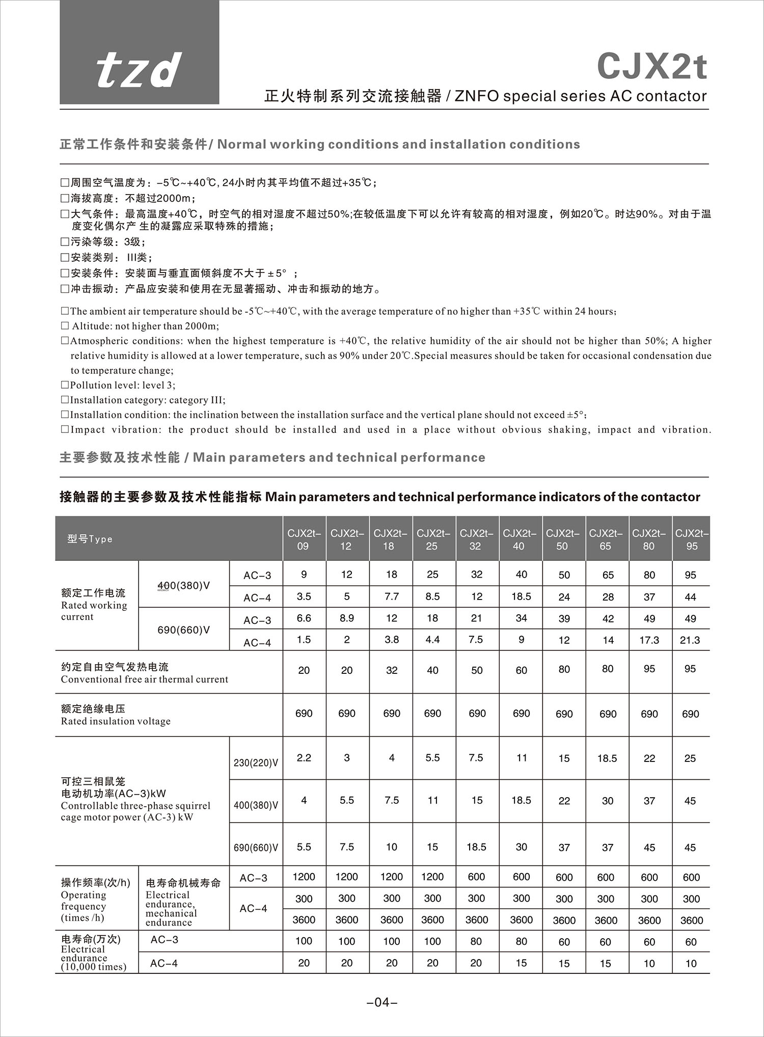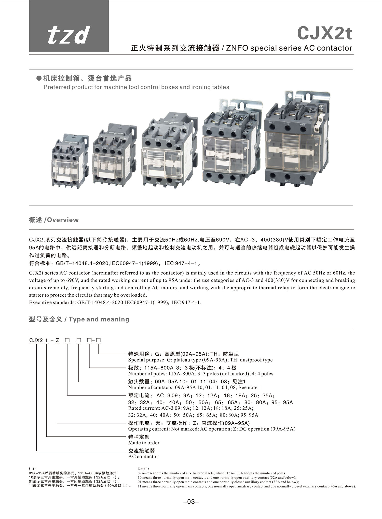 CJX2t 开云体育特制系列交流接触器产品说明书