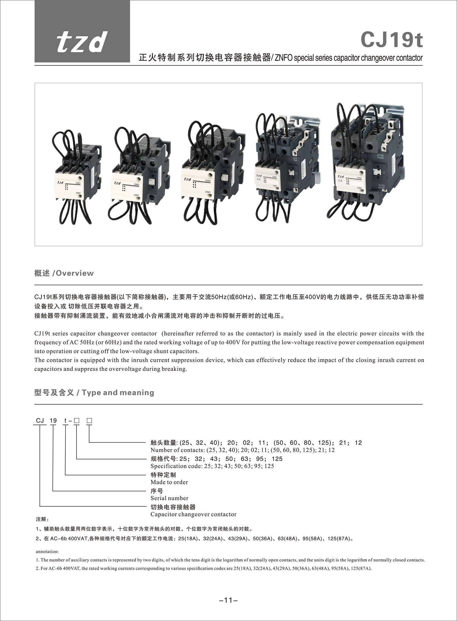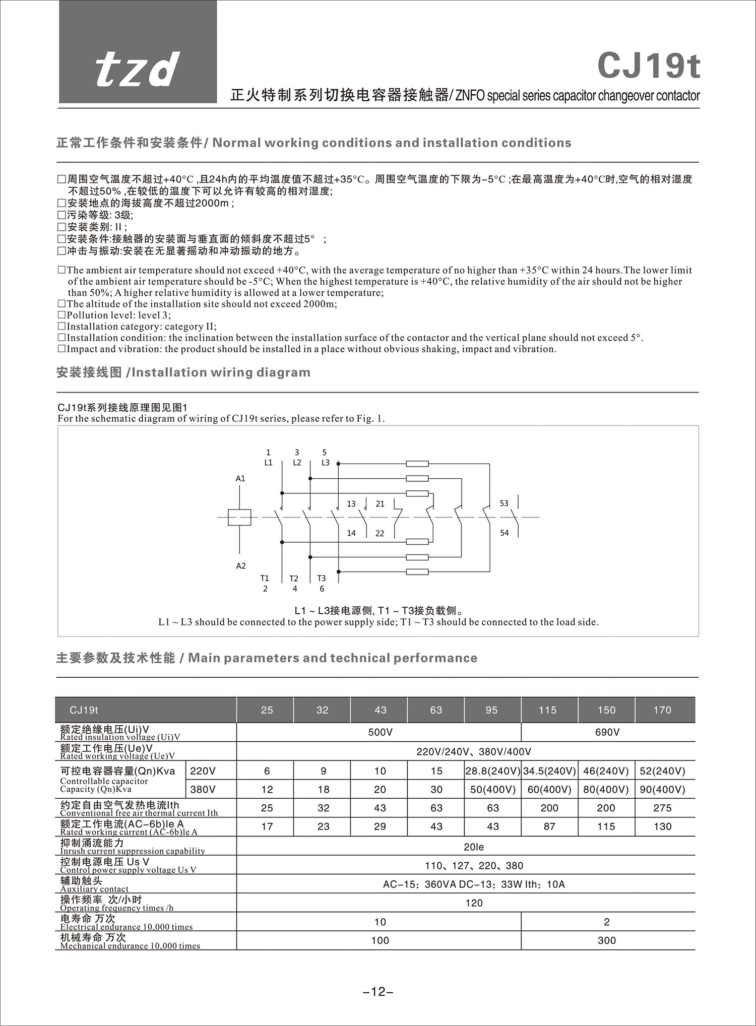 CJ19t 开云体育特制系列切换电容器接触器产品说明书