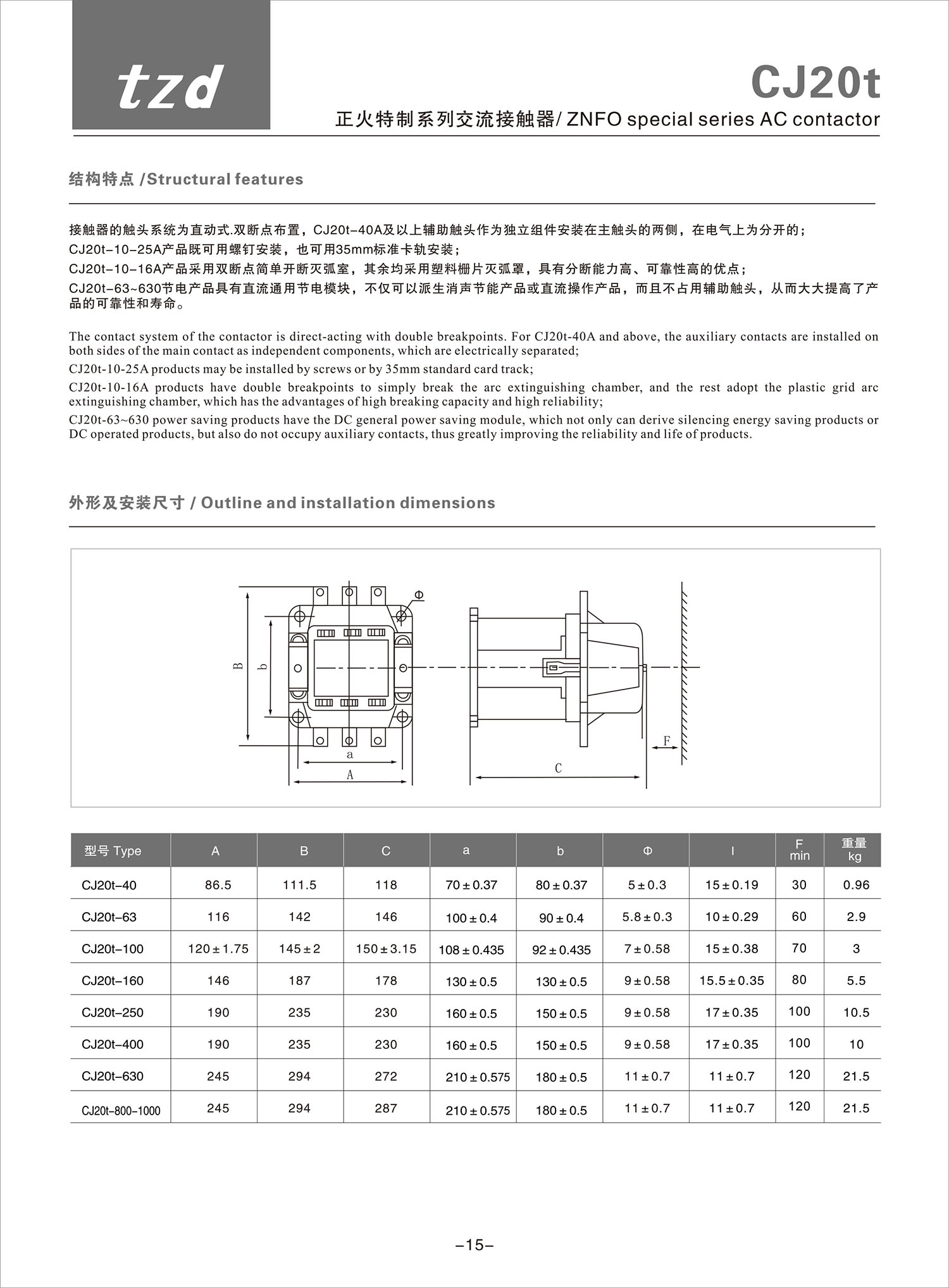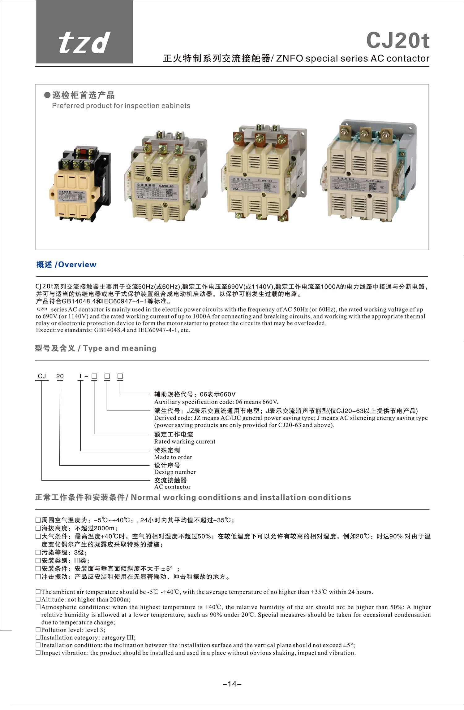 CJ20t 开云体育特制系列交流接触器产品说明书