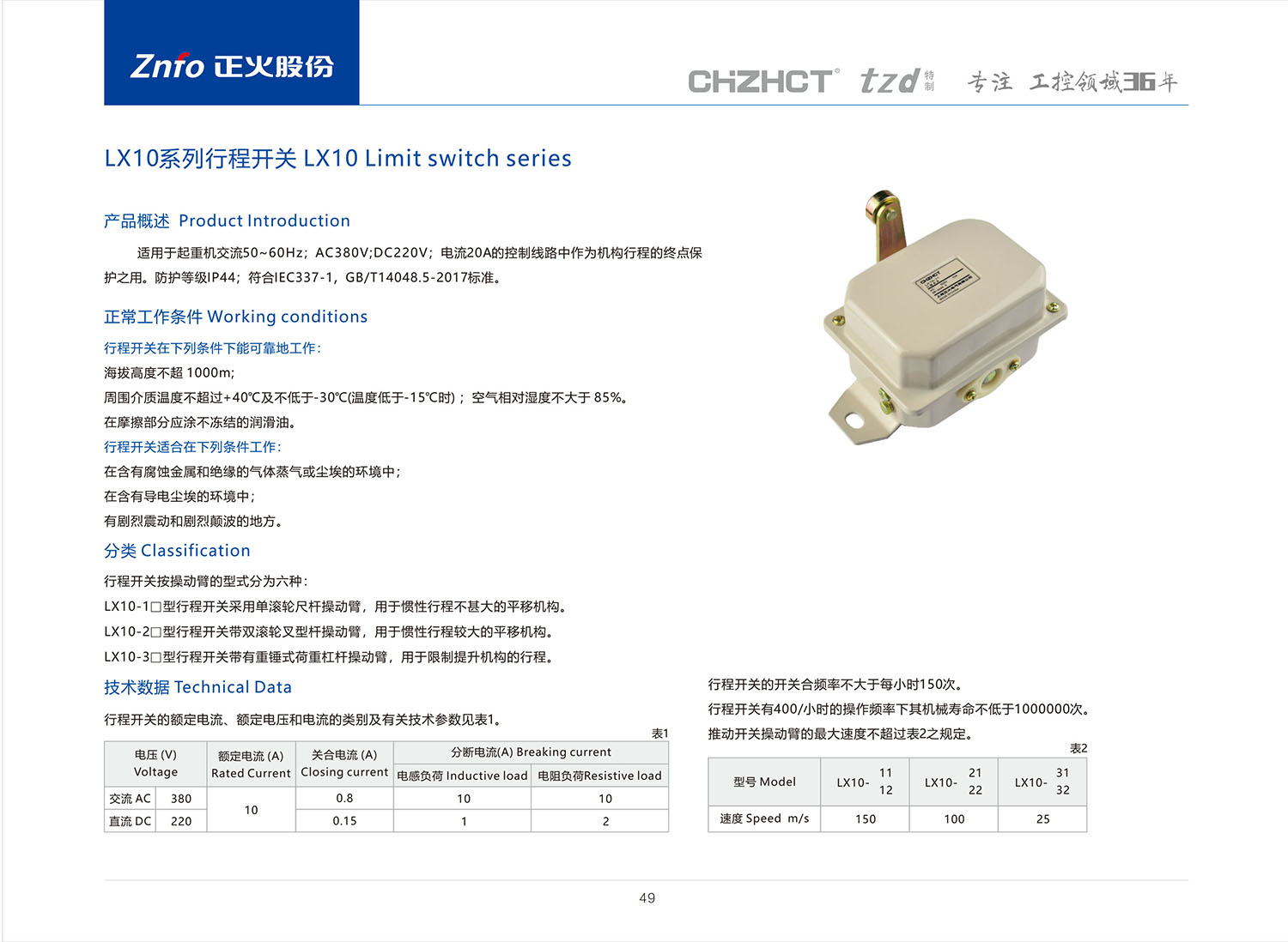 LX10系列行程开关_行程/限位开关_行程/微动/跑偏/拉绳/超速_工业控制与保护_产品中心_开云体育电气股份有限公司